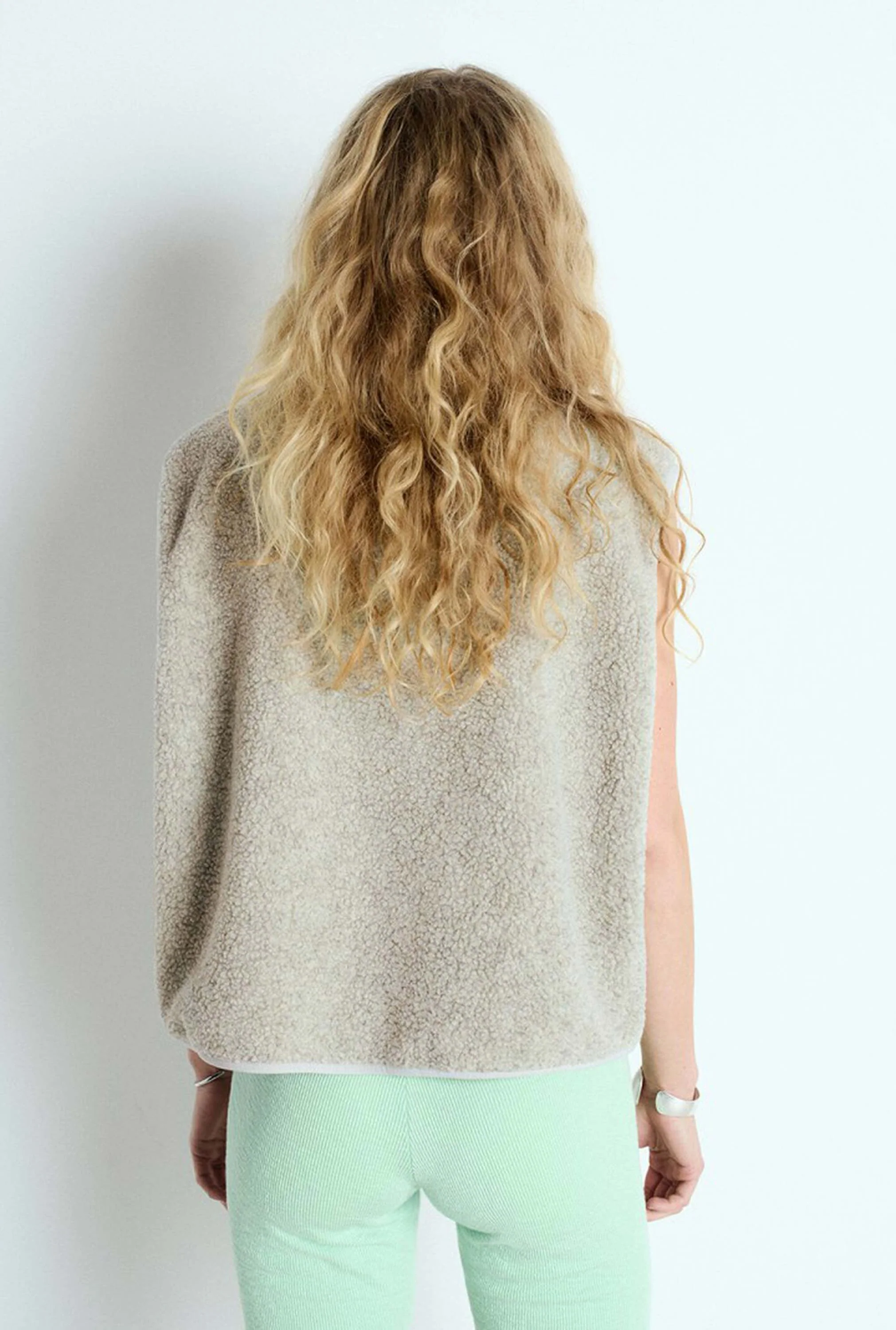 Maak je outfit compleet met deze teddy bodywarmer van American Vintage. Het mouwloze jasje is gemaakt van gerecycled polyester, dit biedt warmte, comfort én is ook nog eens een duurzame keuze. Leuk om te combineren met een warme trui of t-shirt.