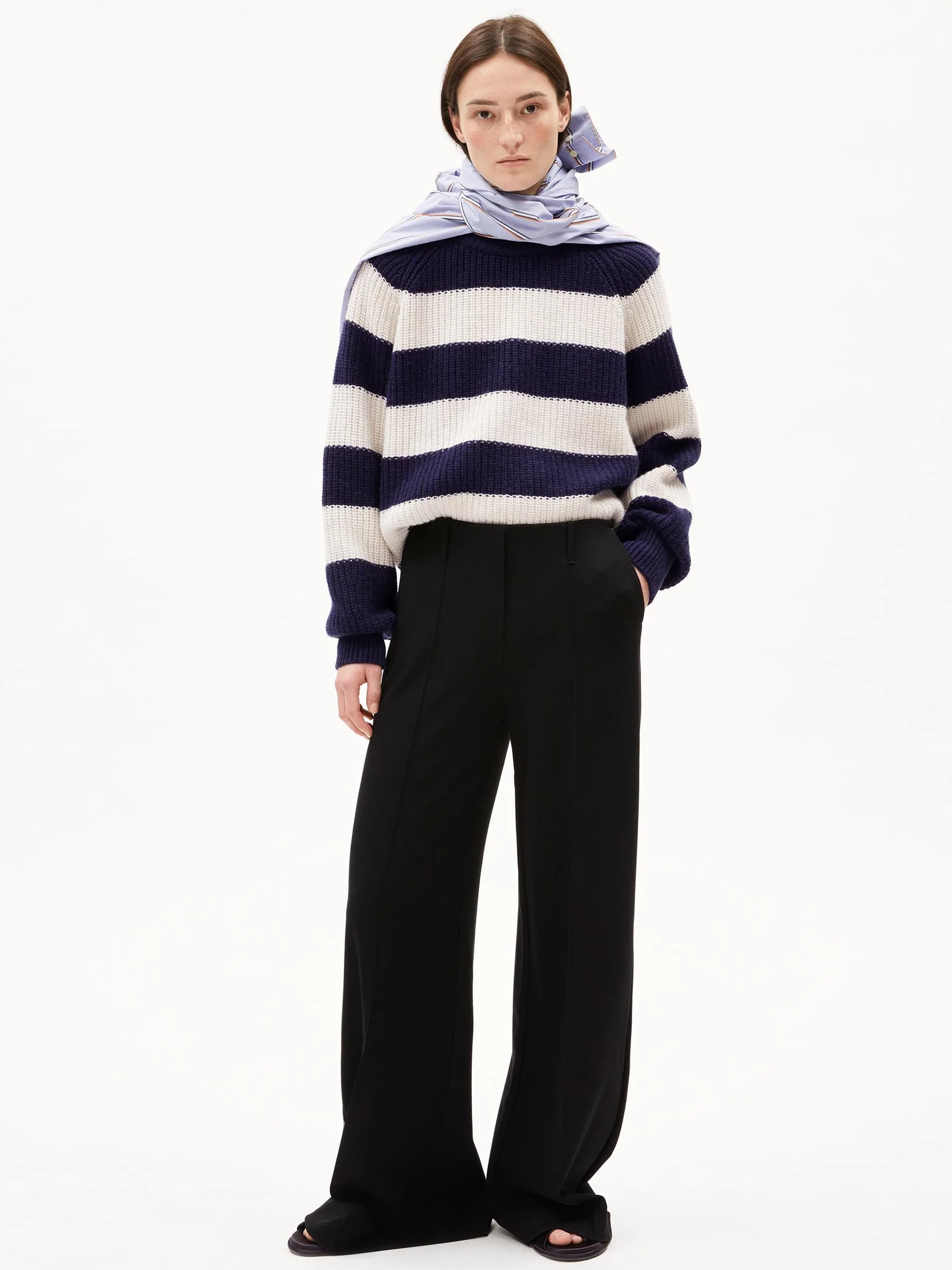 - Wide-leg, uitlopende pijpen, relaxed fit