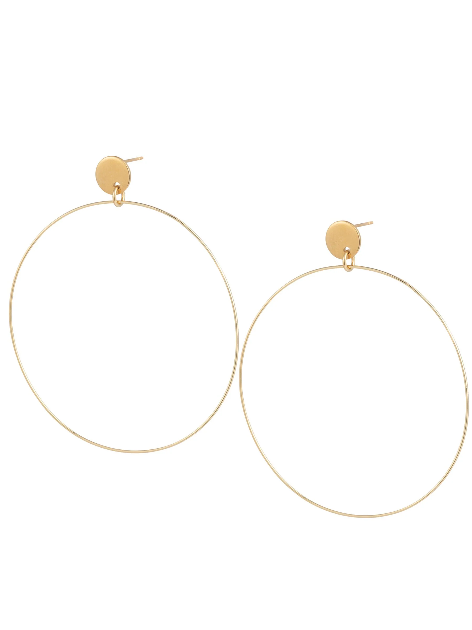 Deze goudkleurige oorstekers met grote cirkel van Ellen Beekmans hebben een minimalistisch en luchtig design. De fijne draadstructuur maakt ze licht om te dragen en met hun diameter van 5 cm zijn ze een subtiele maar opvallende toevoeging aan je look.