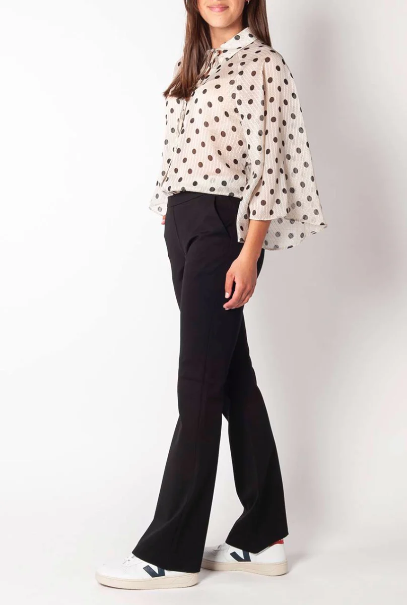 Deze flared broek van Modström zit als gegoten dankzij de zachte materialenmix met stretch. Elegant, comfortabel en makkelijk te stylen.