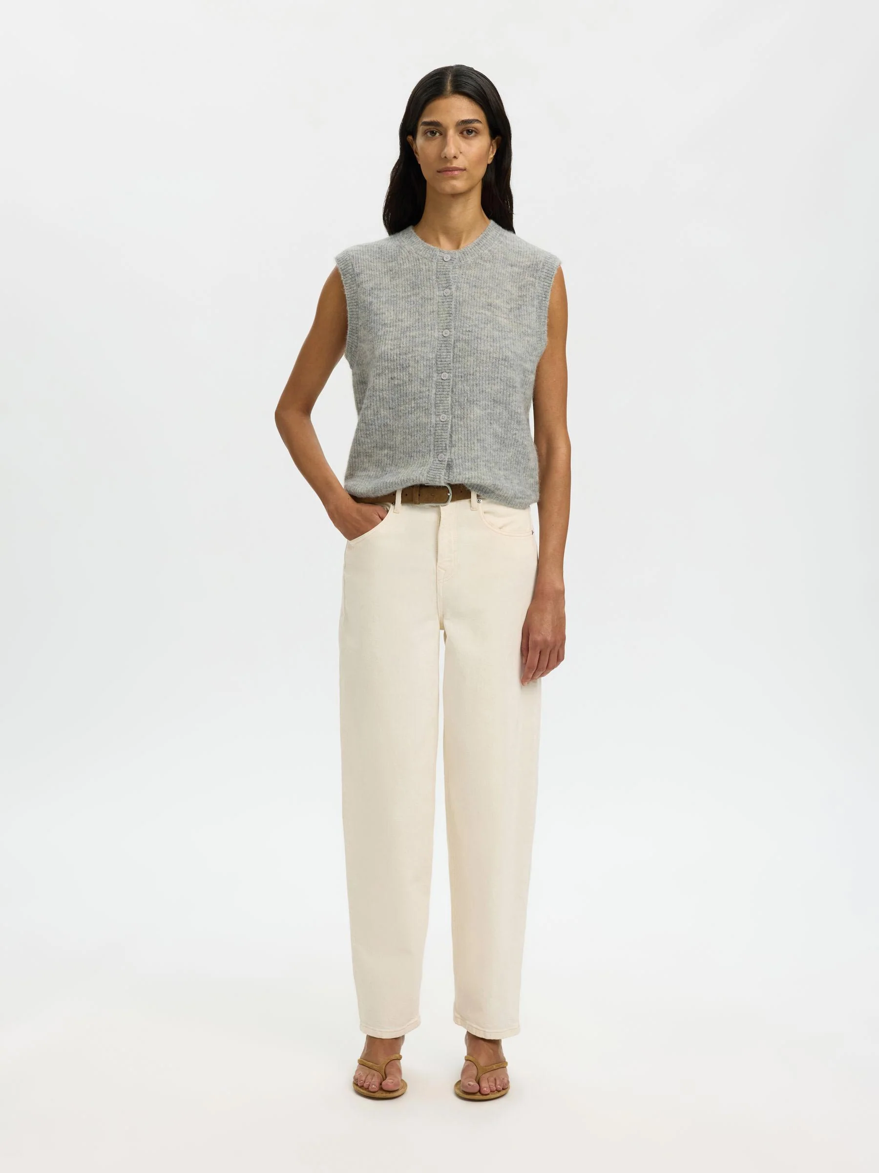Dit gebreide gilet van Selected Femme is zo'n item dat je er steeds weer bij pakt. Licht, zacht en fijn om te layeren, open of dicht geknoopt en altijd goed. Draag dit vest casual op een jeans of juist netter over een blouse.